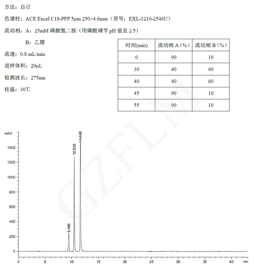 上述應(yīng)用強(qiáng)調(diào)了五氟苯基(PFP)相在位置異構(gòu)體分離中的優(yōu)勢,ACE C18-PFP能夠提供很好的保留和分離效果,從而可以進(jìn)一步優(yōu)化以減少分析時間。