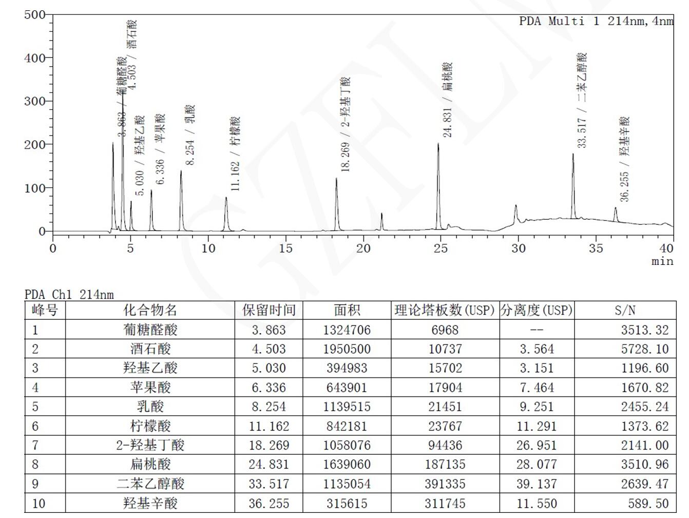 菲羅門液相色譜柱《化妝品安全技術規范》中 10 種α-羥基酸的檢測